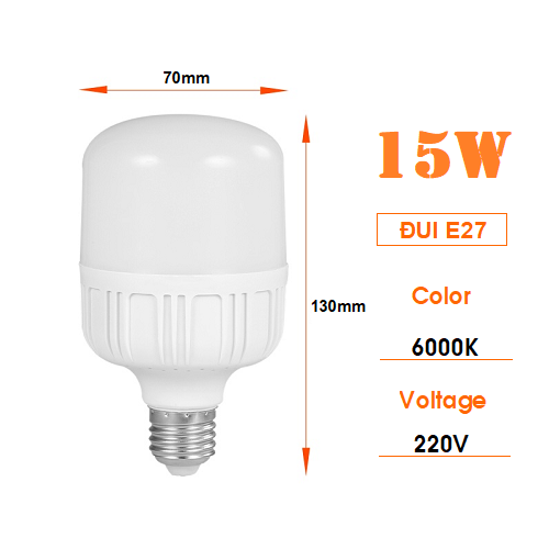 Bóng đèn LED búp trụ 15W có tên gọi khác là bóng đèn led tròn 15W thiết kế đuôi xoáy E27 có nhiều đặc điểm nổi bật giúp cải thiện hiệu quả chiếu sáng và tiết kiệm năng lượng. Dưới đây là những tính năng nổi bật của sản phẩm: